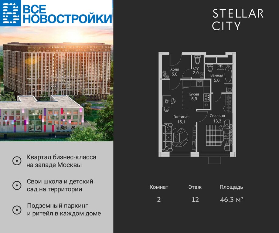 Продается квартира от надежного застройщика Tashir Estate в квартале бизнес-класса Stellar City в ЗАО Москвы.