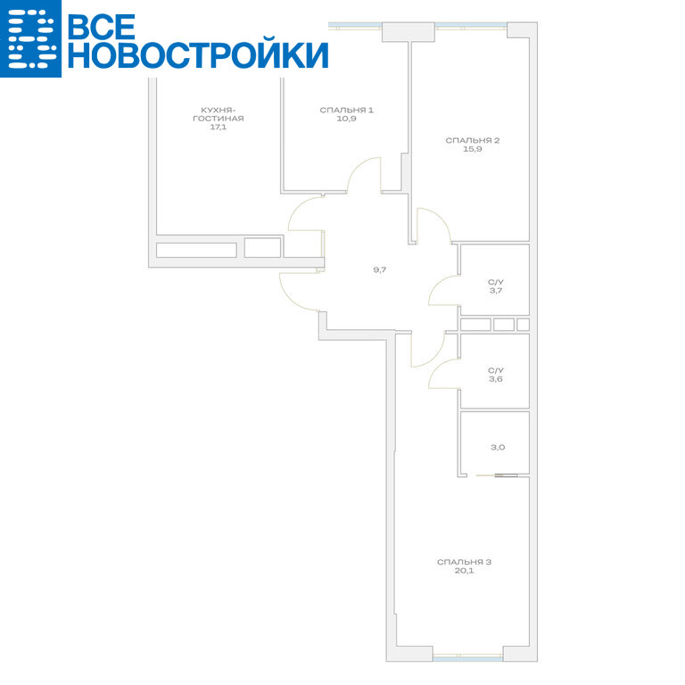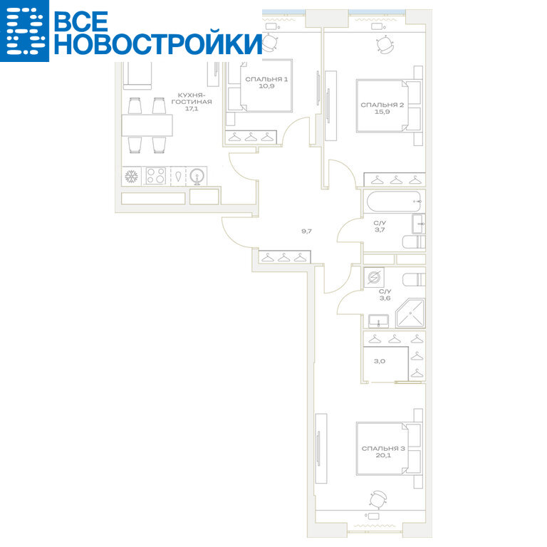 Продается 3-комнатная квартира общей площадью 84 кв. метров на 5 этаже комплекса бизнес-класс...