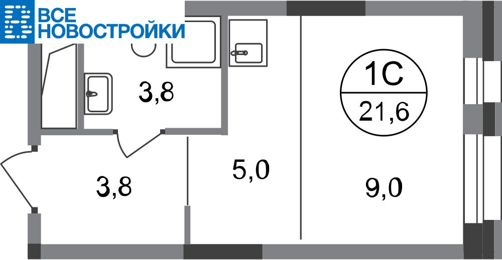 Общая площадь квартиры - 21,6 кв. м, этаж 9 из 20.