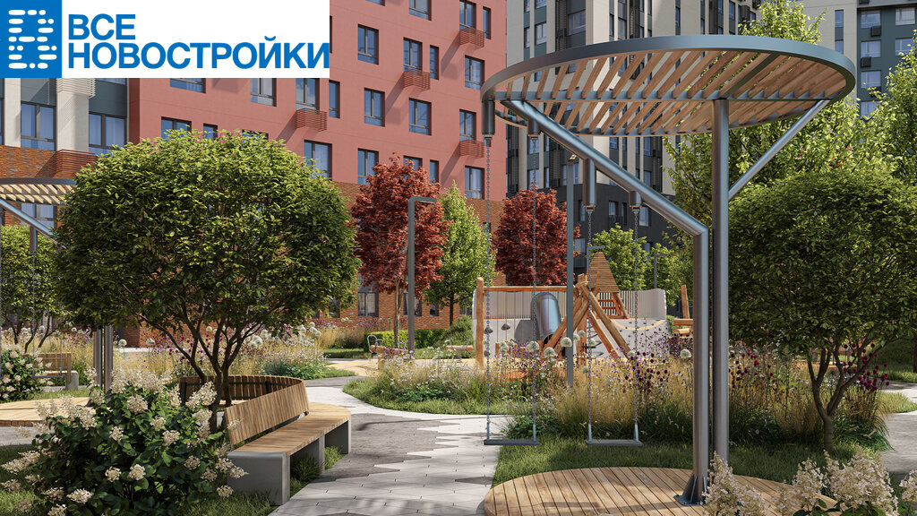 - Игровые зоны для детей, зоны для занятия спортом, зоны для отдыха с навесами/качелями