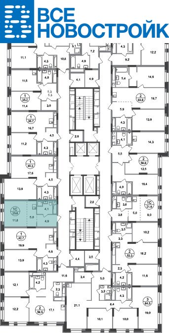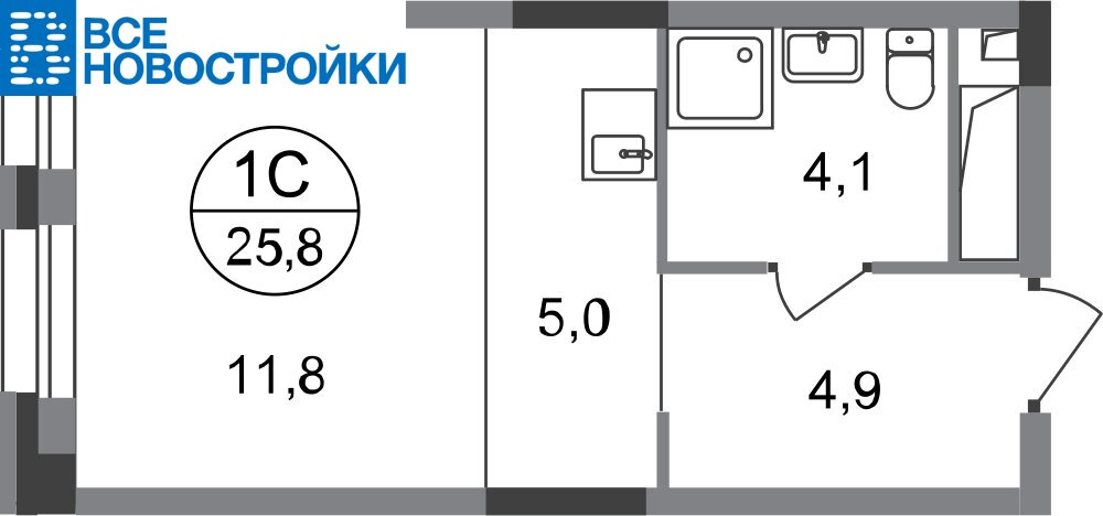 Общая площадь квартиры - 25,8 кв. м, этаж 11 из 20.