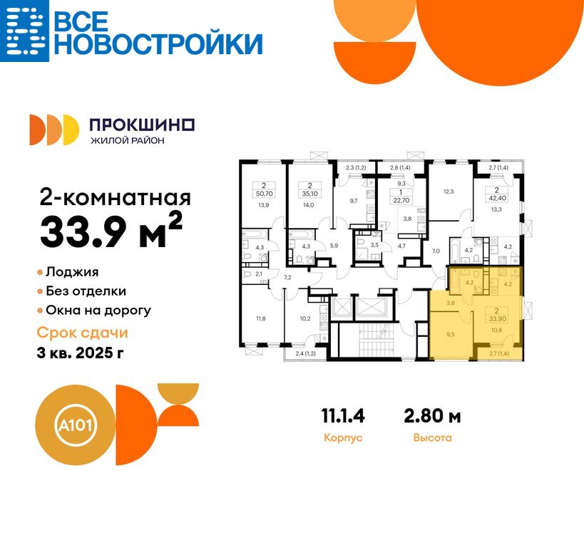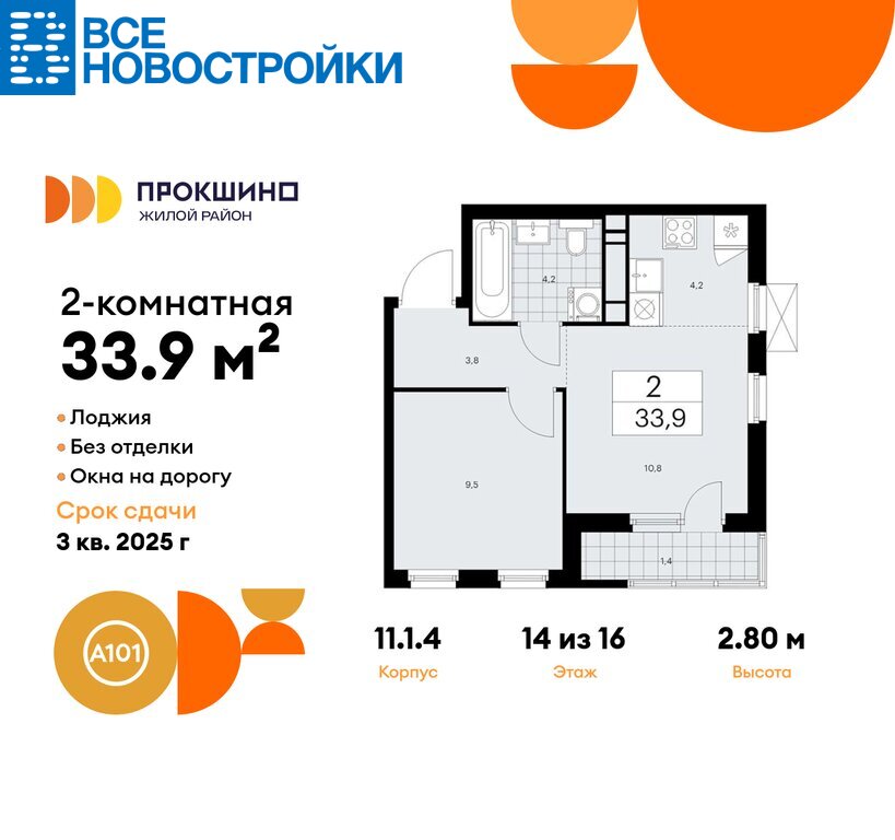 Продается двухкомнатная квартира № 805 в новостройке Жилой квартал «Прокшино» по адресу Москва, ТиНАО, Новомосковский АО, Сосенское С/П, жилой комплекс Прокшино, к11.1.4, район Коммунарка, Новомосковский административный округ, Москва. Общая площадь квартиры – 33.90 кв. м., этаж 14 из 16, секция 11. Тип проекта, по которому построен дом – монолит, компания-застройщик – ООО «А101». Стоимость квартиры – 11311074 Р. Срок сдачи – 3 квартал 2025.