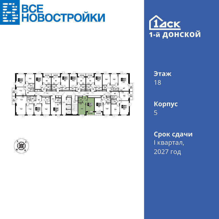 Продаётся 1-к квартира №187 общей площадью 37 кв.м на 18-м этаже 24 этажного дома. Отделка Whitebox.