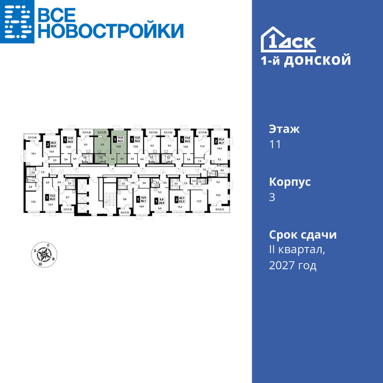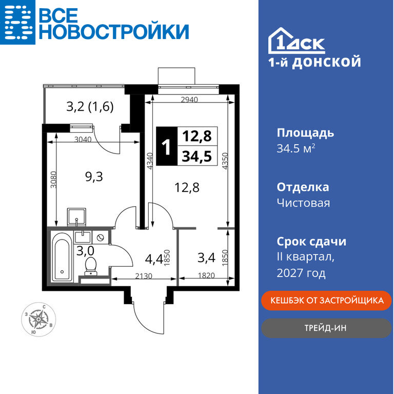 Продаётся 1-к квартира №347 общей площадью 34.5 кв.м. на 11-м этаже 24 этажного дома. Чистовая отделка.