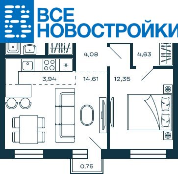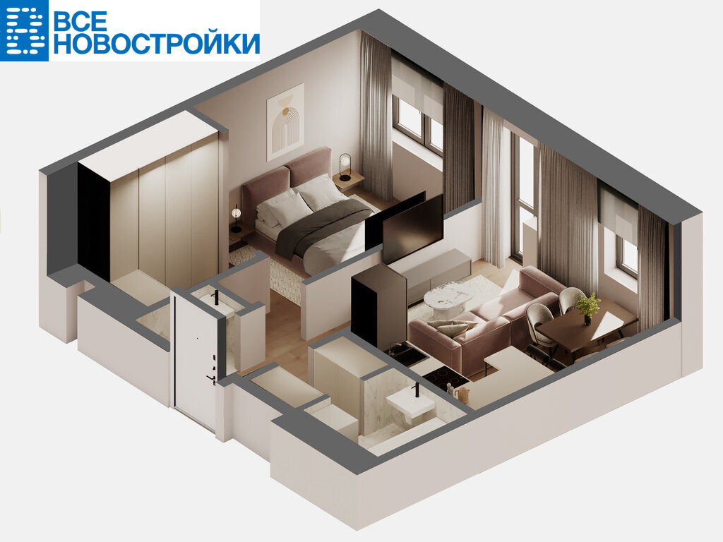 Продается квартира в ЖК "М5" с 1 спальней на 8 этаже 25 этажного дома. Общая площадь: 47.4 кв.м. Высота потолков 2.8 м. Срок сдачи 2 квартал 2025 г. Вид на воду. Мало квартир на этаже. Эскроу-счет. Застройщик ГК «Садовое Кольцо».