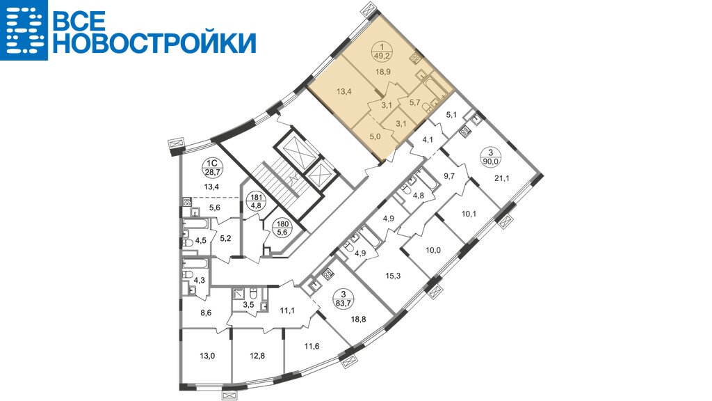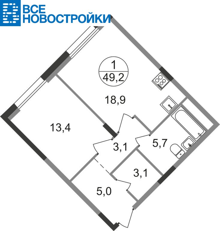 Общая площадь квартиры - 49,2 кв. м, этаж 3 из 9.
