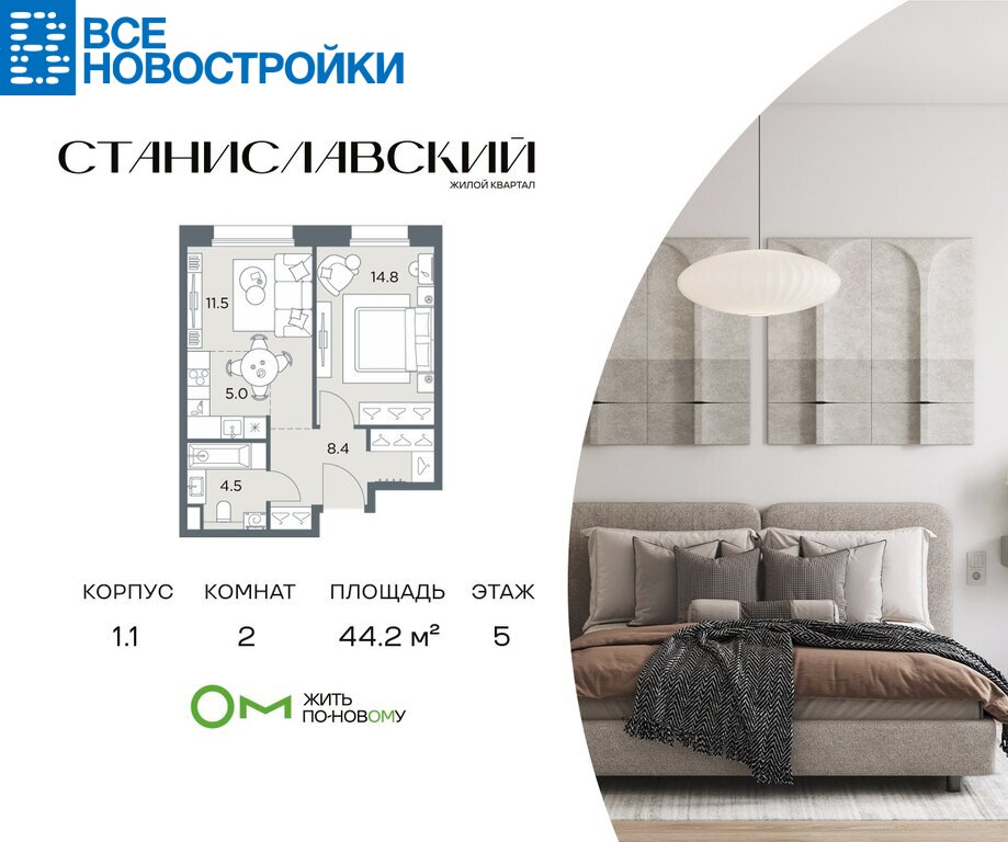 ЖК "Станиславский" - это выбор тех, кто готов перейти на новый уровень жизни в престижной локации в 10 минутах от Москвы, пользоваться городской инфраструктурой, но дышать чистым загородным воздухом. Проектом предусмотрено строительство пяти жилых корпусов высотой в 6 этажей. Красивые дома из архитектурной фасадной плитки выполнены в лучших традициях тихих европейских пригородов и скандинавских деревушек. Закрытая территория с собственной инфраструктурой подчеркивает самостоятельность жилого к...