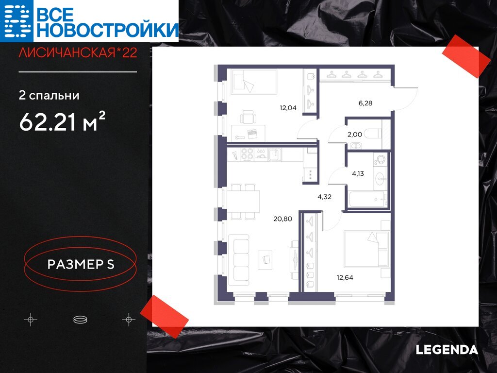 Двухкомнатная квартира от застройщика с первичной отделкой в ЖК "Лисичанская, 22" на 2 этаже. Общая площадь: 62.21 кв.м., жилая: 24.68 кв.м., площадь просторной кухни-столовой: 20.8 кв.м. Квартира угловая, идеально подойдет любителям тишины и панорамных видов. В квартире один раздельный санузел. Высота потолков 2.7 м.