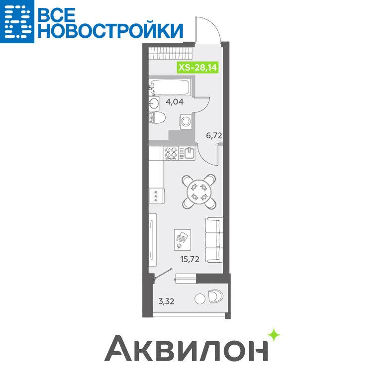 Студия 28.14 м²