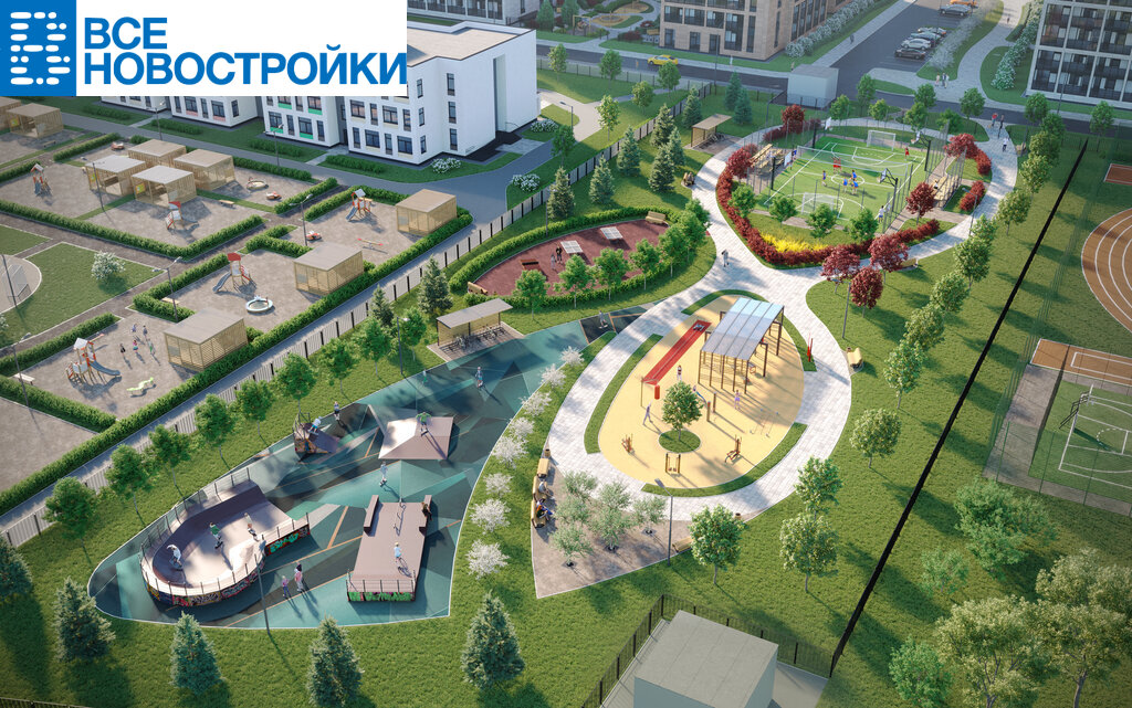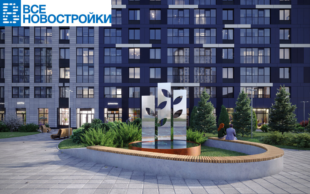 • Комьюнити-центр. Места притяжения: фонтан "Бионика", спортивный кластер со скейт-парком, фотозоны с арт-объектами