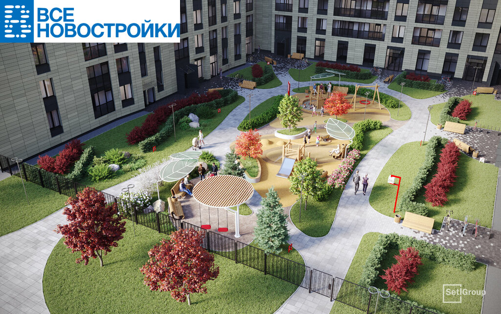 10 минут от метро Балтийская. Разнообразие планировок, отделка White box. Приватный зеленый двор с детскими площадками для разных возрастов.