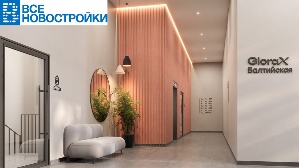 GloraX Балтийская разделен на 11 секций комфортной высотности от 7 до 9 этажей. Переменная этажность позволяет солнцу в равной степени освещать все квартиры, а увеличенная площадь остекления – получить максимум дневного света.