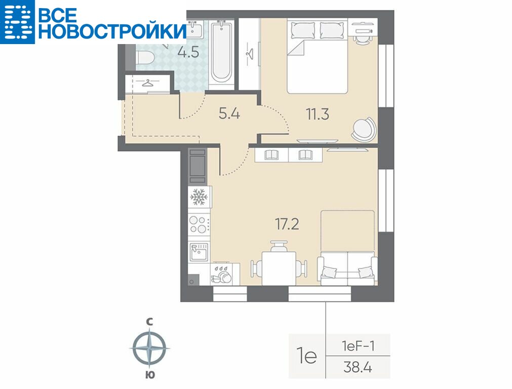 Продаётся 1-комнатная квартира в ЖК «Большая Охта» на 5 этаже. Общая площадь составляет 38.40 кв. м. Квартира с white box отделкой. Жилой комплекс «Большая Охта» располагается по адресу Санкт-Петербург, Красногвардейский.