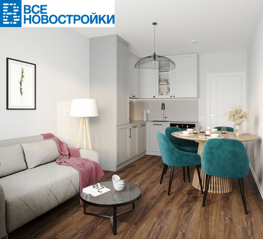 Между корпусами расположены спортивные и детские площадки, пешеходный бульвар. В квартире выполнена полная отделка «Comfort Wood» из качественных материалов: прочный ламинат цвета благородного дуба, фактурные белые обои, керамическая плитка в ванной.