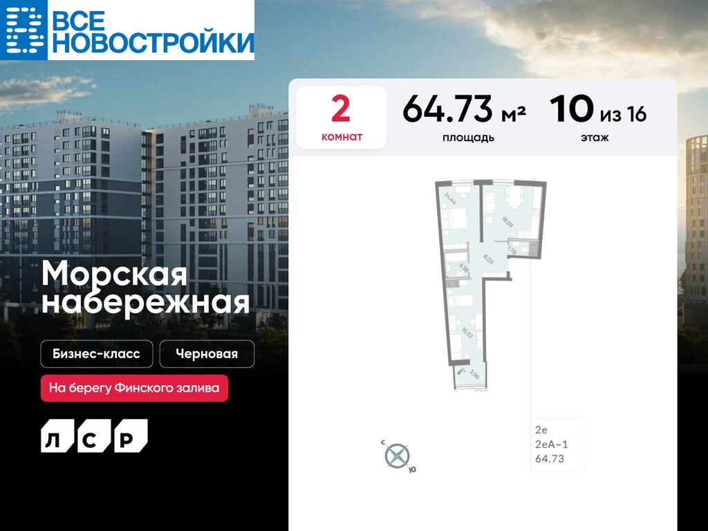 Продается 2-комнатная квартира в ЖК «Морская набережная» на 10 этаже. Общая площадь составляет 64.73 кв. м. Квартира без отделки. Жилой комплекс «Морская набережная» располагается по адресу Санкт-Петербург, Василеостровский