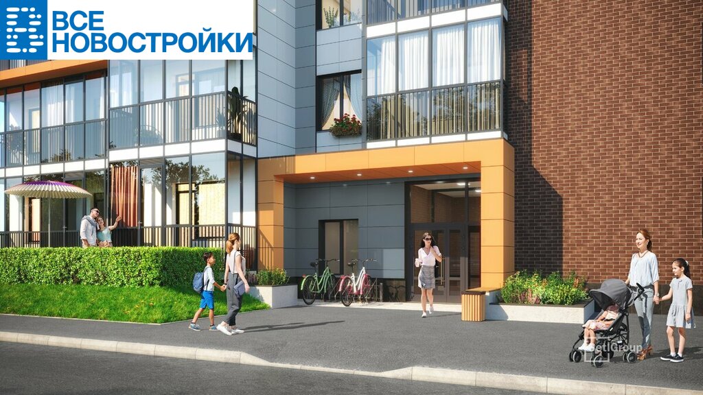• Фасады из керамогранита и кирпича с яркими и акцентными входными группами