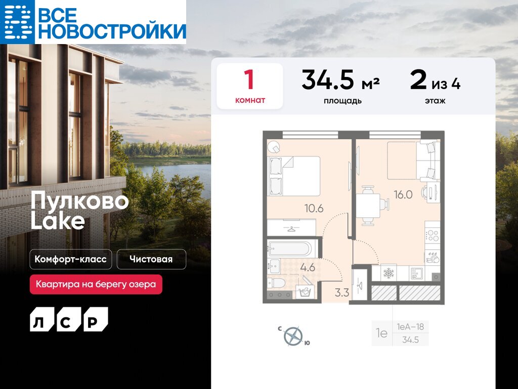 Пулково Lake – проект малоэтажной застройки на берегу озера на границе Московского и Пушкинского районов. Дома высотой всего 4 этажа, квартиры от уютных студий до трехкомнатных квартир для большой семьи. Широчайший выбор планировок, включая квартиры с мастер-спальнями, патио, каминами,...