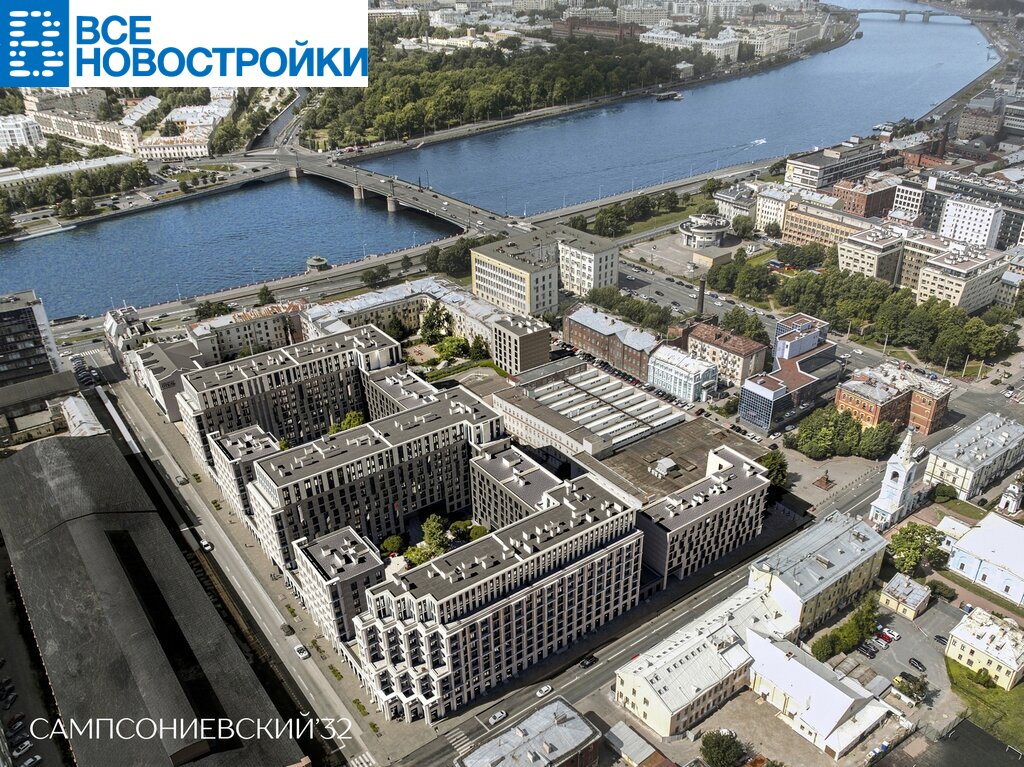 «Сампсониевский, 32» — новый квартал бизнес-класса в Выборгском районе недалеко от набережной Большой Невки и Петроградской стороны. Его отличают каскадные фасады с большой площадью остекления, видовые квартиры с террасами, от комплекса всего 5 минут пешком до воды. Застройщик планирует сдать ЖК в конце 2026 года, а передать ключи покупателям — во II квартале 2027 года.