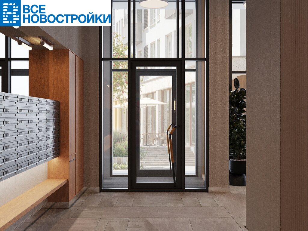 Мы разделили лобби на два типа — большие (одно на каждый дом) и компактные (на каждую секцию). Для создания интерьеров лобби и холлов мы используем материалы природных оттенков, текстуры дерева и камня, матовые поверхности. В большие открытые пространства запускаем много естественного света, а витражное остекление органично связывает помещения с ландшафтом.