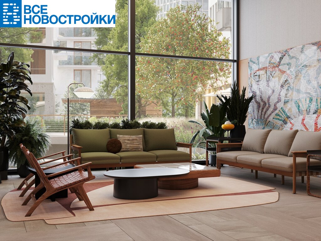 Мы разделили лобби на два типа — большие (одно на каждый дом) и компактные (на каждую секцию). Для создания интерьеров лобби и холлов мы используем материалы природных оттенков, текстуры дерева и камня, матовые поверхности. В большие открытые пространства запускаем много естественного света, а витражное остекление органично связывает помещения с ландшафтом.