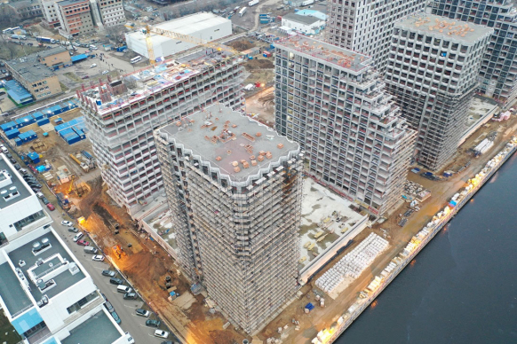 Особенностью корпуса с апартаментами и наземного паркинга стало использование металлоконструкций. Данная технология успешно применяется в Европе уже 20 лет, и в развитых странах доля зданий на стальном каркасе превышает 60%. Внедрение зарубежного опыта в проект городского квартала позволило создать эффективные архитектурные решения. Поскольку несущие конструкции расположены преимущественно по периметру здания, в паркингах удалось разместить большее количество машино-мест, а также боксы для хранения яхт, а в корпусе апартаментов – предусмотреть свободные планировки с возможностью объединения соседних лотов.