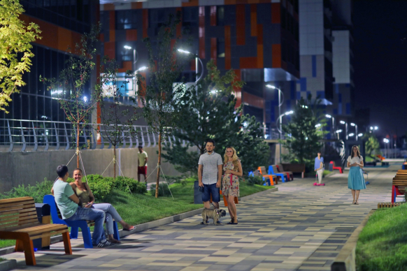 городском квартале «Ривер Парк» созданию общественных зон уделено особое внимание. К разработке концепции благоустройства было привлечено известное ландшафтное бюро AFA. В результате в комплексе появилась одна из самых больших в городе дворовых территорий площадью почти 1,5 га, на которой помимо променада, детских и спортивных площадок предусмотрена мультифункциональная площадка, отлично подходящая для проведения мероприятий.