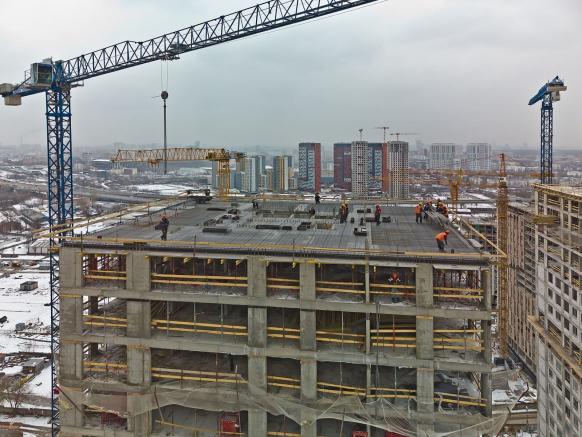 Общая строительная готовность многосекционного дома общей площадью около 52 тыс. кв. м по итогам 1 квартала 2022 г. составляет 30%.
