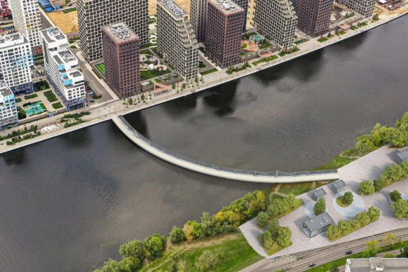 В Москве началось строительство пешеходного моста длиной 240 метров, который свяжет территорию городского квартала «Ривер Парк Коломенское» с будущим транспортно-пересадочным узлом. Пешеходы за считанные минуты смогут попасть от строящейся станции «Нагатинский Затон» Большой кольцевой линии метро к себе домой.