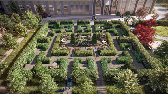 Исключительное внимание архитекторы уделили благоустройству квартала. Во дворе ERA раскинется живописный английский парк с цветочными полянами, зеленым лабиринтом, яблоневым садом, игровыми площадками для детей и многочисленными зонами для тихого уединенного отдыха. Использование геопластики в рельефе и живых изгородей из туи, винограда и мелколистной липы будут делить пространство двора на уютные комнаты – так, чтобы каждый обрел свое любимое место в ERA.