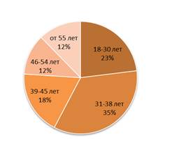 Возраст покупателей жилья на первичном рынке массового сегмента: