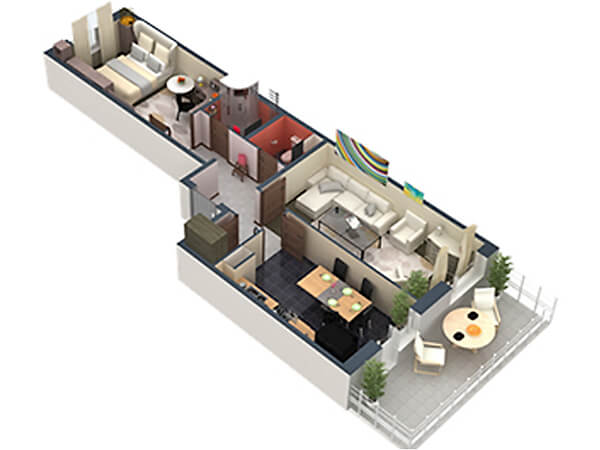 «Просторная терраса в квартирах на первом этаже или большой застекленный балкон на этажах выше, которая станет прекрасной зоной отдыха, небольшим «спортзалом», рабочим кабинетом – в зависимости от ваших вкусов и предпочтений. В прихожей спроектирована кладовая, либо, при желании, в этом помещении можно обустроить гардеробную. Сама прихожая изолированная, то есть пыль и грязь от уличной обуви не разносятся по квартире».